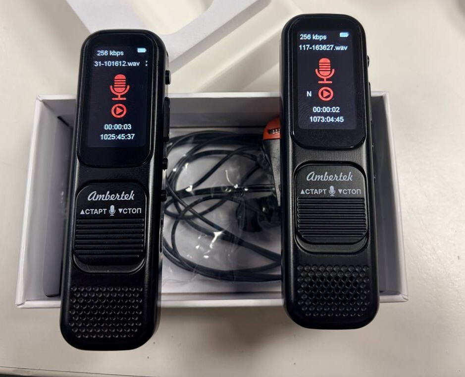 - Подключите мини диктофон Ambertek VR275F к зарядному устройству 220B проводом, который поставляется в комплекте. Уровень заряда будет отображаться на встроенном LED-экране.